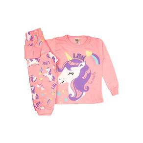 Pijama Rosa com Estampa de Unicórnio Malha Algodão Conforto