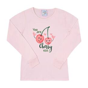 Pijamas quentinhos e confortáveis para manter as pequenas fofurinhas prontas para a soneca. Confeccionado em meia malha na cor rosê, a blusa possuí estampa de cerejas com escrita "You are cherry cool" (você é cereja legal) com detalhes que brilham no escuro, e a calça com estampa rotativa de cerejas possuí elastano no cós para manter sua pequena confortóval durante o sono.\n