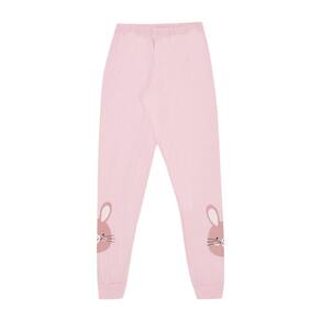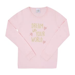 Chegou a estação mais fria do ano, é hora de pijama quentinho e confortável para o sono de beleza das meninas! O conjunto é todo confeccionado em meia malha na cor rosê. A blusa de manga longa possuí estampa frontal com escrita "Sonhe em seu mundo" e o detalhe divertido da peça é que a estampa brilha no escuro. A calça além de proporcionar conforto e segurança por ter elastano na cintura, possuí também estampas de coelhos nas laterais da perna.\n