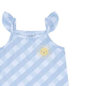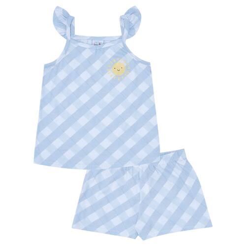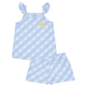 Este pijama é a escolha perfeita para sua pequena dormir cheia de estilo no verão! As peças do pijama são confeccionadas em tecido meia malha, garantindo frescor e conforto para sua baby. Com estampa rotativa xadrez na cor nuvem, a blusa possuí um pequeno sol sorridente estampado com glitter próximo ao peito. O short possuí elastano na cintura garantindo segurança e conforto. Sua fofurinha não vai passar calor durante a noite!\n