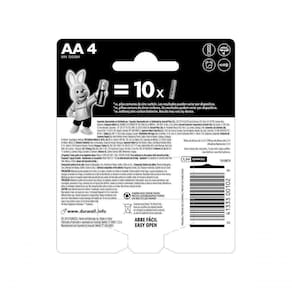 Pilha Alcalina 1,5v Aa Mn1500 (com 4 Pilhas) As pilhas alcalinas Duracell são a melhor opção para diversas situações e costumam ser escolhidas como as melhores pilhas para diferentes aparelhos, como controles remotos e de vídeo game, lanternas, sensores, brinquedos e muito mais As pilhas alcalinas Duracell estão disponíveis em uma enorme variedade de tipos e tamanhos, garantindo sempre o produto certo para as suas necessidades, a qualquer momento. DURA ATÉ 10 VEZES MAIS* Dura até 10 vezes mais vs. pilhas comuns de zinco-carbono. Os resultados podem variar por dispositivo. Ideais para os dispositivos do dia a dia Características Tipo: Alcalina Tamanho: AA (Pequena) Voltagem: 1,5V As pilhas alcalinas Duracell são a melhor opção para diversas situações e costumam ser escolhidas como as melhores pilhas para diferentes aparelhos, como controles remotos e de vídeo game, lanternas, sensores, brinquedos e muito mais As pilhas alcalinas Duracell estão disponíveis em uma enorme variedade de tipos e tamanhos, garantindo sempre o produto certo para as suas necessidades, a qualquer momento. DURA ATÉ 10 VEZES MAIS* Dura até 10 vezes mais vs. pilhas comuns de zinco-carbono. Os resultados podem variar por dispositivo. Ideais para os dispositivos do dia a dia Características Tipo: Alcalina Tamanho: AA (Pequena) Voltagem: 1,5V Ean: 041333001029