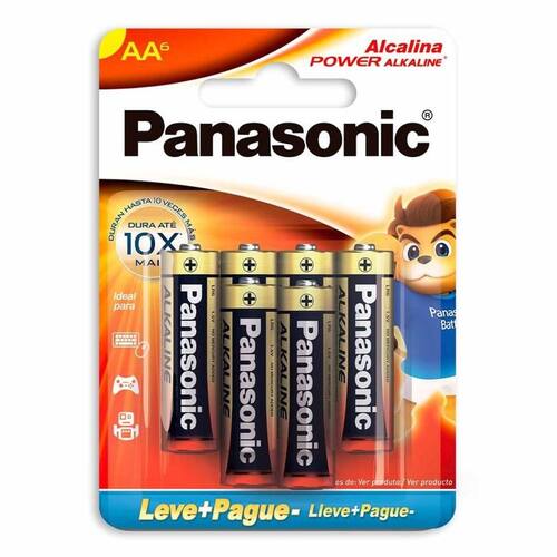 Pilha Alcalina AA Panasonic SM-6 LR6XAB/L6P5192 As pilhas Alcalina Panasonic são desenvolvidas para proporcionar mais durabilidade nos aparelhos que exigem mais energia. Marca: Panasonic Modelo: LR6XAB/L6P5192 Tamanho: AA Caixa Master: 32 Ean: 7896067203002