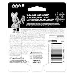 Essas pilhas têm um tamanho AAA (palito), uma voltagem de 1,5V e são do tipo alcalina. Com 8 pilhas nesse pacote, você estará preparado para qualquer necessidade. Escolha as pilhas alcalinas Duracell e experiencie a melhor qualidade e durabilidade para seus dispositivos.
