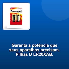 Com a confiança de uma marca como Panasonic, escolha a Pilha Alcalina Grande D Com 2 Lr20xab/2b e experimente a qualidade e eficiência que você precisa para seus aparelhos.