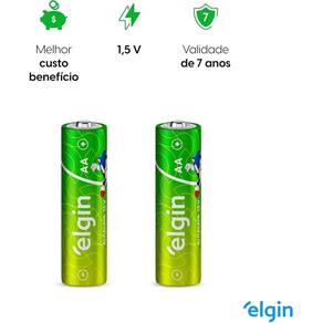 Tipo: Pilha Alcalina Modelo: AA (LR6) Voltagem: 1.5V Embalagem: Blister com 2 unidades Marca: Elgin Não recarregável