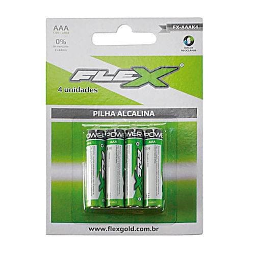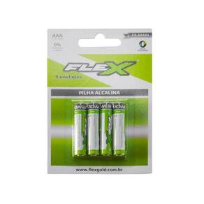 Conteúdo da Embalagem 1 Cartela com 4 Pilhas Alcalinas Flexgold AAA. Ean: 7898615151940