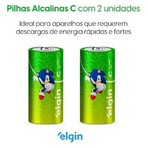 As pilhas alcalinas C Elgin do mascote Sonic são ideais para brinquedos, controle remotos, lanternas e outros aparelhos que requerem descargas de energia rápidas e fortes. Elas foram aprovadas em todos os quesitos e têm ótima relação custo/benefício, você economiza e ainda conta com pilhas de alta qualidade. Entre 11 marcas de pilhas do mercado avaliadas em testes do INMETRO, as pilhas Elgin apresentaram um resultado excelente na relação custo por hora útil. Além disso, elas são testadas periodicamente por laboratórios credenciados pelo INMETRO, para garantir a qualidade e conformidade com a resolução Conama 401.