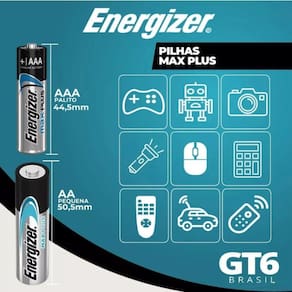 Pilha alcalina m.Plus aaa2 cart 2 energizer Pilha alcalina energizer m.Plus aaa2 cart 2 Pilha alcalina energizer max plus aaa - energia de longa duração As pilhas alcalinas energizer max plus aaa foram desenvolvidas para proporcionar energia confiável e duradoura para os seus dispositivos eletrônicos do dia a dia. Com tecnologia avançada da energizer, elas oferecem maior desempenho e proteção contra vazamentos, garantindo o funcionamento seguro e eficiente de seus aparelhos. Especificações do produto: marca: energizer modelo: max plus aaa tipo: alcalina voltagem: 1,5v tecnologia powerseal tm : protege contra vazamentos e prolonga a vida útil dos dispositivos duração prolongada: até 12 anos de vida útil em armazenamento indicação de uso: controles remotos, lanternas, brinquedos, câmeras digitais, rádios, relógios e outros aparelhos eletrônicos quantidade na embalagem: 2 unidades escolha energizer max plus aaa para garantir máximo desempenho e confiabilidade em seus dispositivos. Energia que dura mais para você Marca: Não Informado