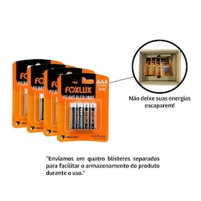 - Sem oscilação de tensão, medição conforme os padrões do Inmetro Experimente e comprove você também a alta durabilidade das Pilhas Alcalinas Palito AAA Foxlux!