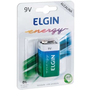 A bateria alcalina 9V - Elgin, pacote 10 unidades.