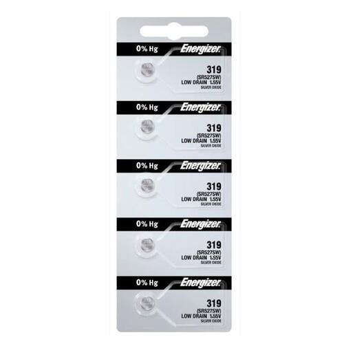 Marca Energizer Linha Silver Oxide Modelo 319 Tamanho da pilha SR527SW Forma Botão Formato de venda Cartela Unidades por kit 5 Outros Voltagem nominal 1.5V É recarregável: Não