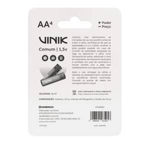 Pilha Comum Aa C/4 1.5v - Vp2ab4c PILHA COMUM AA C/4 1.5V - VP2AB4CAs pilhas e baterias Vinik são a escolha perfeita para diversas situações, oferecendo desempenho confiável e durabilidade para todos os tipos de dispositivos. Seja para controles remotos, videogames, lanternas, sensores, brinquedos ou muitos outros aparelhos, nossas pilhas garantem energia quando você mais precisa.Disponíveis em uma ampla variedade de tipos e tamanhos, projetadas para atender às suas necessidades com eficiência e qualidade.Mais potência por menos preço.CaracterísticasTipo: Comum Tamanho: AAVoltagem: 1,5VBlister: 4 unidades Ean: 7908445435957