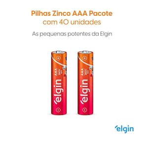 Pilha De Zinco AAA Palito - Caixa Com 40 Unidades As pilhas de zinco AAA da Elgin do mascote Sonic são têm voltagem de 1.5V e são perfeitas para brinquedos, controle remotos, lanternas e outros aparelhos que requerem descargas de energia rápidas e fortes. Unindo economia e qualidade, as pilhas Elgin foram aprovadas em todos os quesitos e têm ótima relação custo/benefício. Assim, você economiza e ainda conta com pilhas de alta qualidade. Além disso, foram testadas e aprovadas, entre 11 marcas de pilhas do mercado avaliadas em testes do INMETRO, as pilhas Elgin apresentaram um resultado excelente na relação custo por hora útil e não agridem o meio ambiente porque têm 0% de metais pesados em sua composição.Essa cartela contém 40 unidades Pilha de Zinco AAA; Ean: 7897013588921