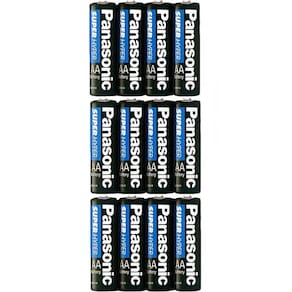 pilha aa panasonic comum cartela c/12 unidades características: marca: panasonic linha: super hyper modelo: comum tamanho da pilha: aa forma: cilíndrica formato de venda: kit unidades por kit: 12 voltagem nominal 1. 5v recarregável não