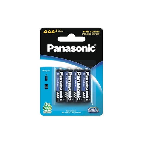 A Pilha Palito Aaa Comum C/ 4 Unidades Panasonic é indicada para alimentar aparelhos compatíveis do dia a dia com praticidade. É uma opção útil para controles, brinquedos, relógios, lanternas, acessórios e outros eletrônicos conforme o formato correto.