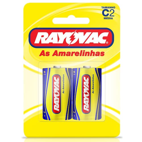 As Amarelinhas Rayovac, também conhecidas como pilha de zinco, são a alternativa econômica para aparelhos que consomem pouca energia, como controles remotos de televisão e relógios de parede. As pilhas convertem energia química em elétrica. A pilha comum é formada de zinco pólo negativo e carbono pólo positivo, em contato interno entre si por meio de uma mistura de dióxido de manganês, carbono, cloreto de zinco e amônio. Ean: 7896009711015
