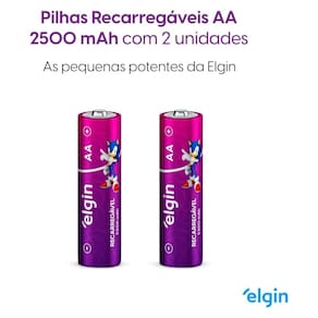 As pilhas recarregáveis Elgin têm parceria com a Sonic the Hedgehog e foram desenvolvidas nos mais altos padrões de qualidade para garantir o funcionamento dos dispositivos por mais tempo com mais estabilidade. Elas permitem até 1000 recargas, tornando um produto além de econômico, muito sustentável.