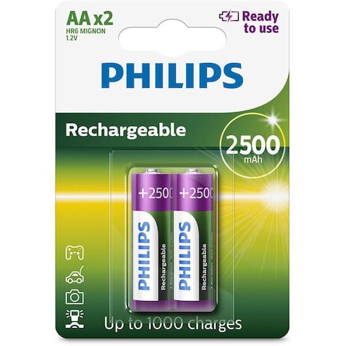 Kit 2 Pilhas recarregáveis AA Philips 2500MAH R6B2RTU25/97