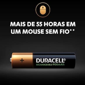 Ideais para controles de vídeo game, brinquedos, controles remotos, câmeras digitais e muitos outros aparelhos, as pilhas recarregáveis Duracell AAA 900 mAh podem ser recarregadas centenas de vezes em qualquer carregador NiMH. Além de serem pré-carregadas na fabricação, o que possibilita o uso imediato, elas permanecem carregadas por até 12 meses quando não estão em uso e têm duração de até 10 anos.