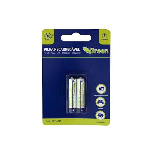 Pilha Recarregável Green 1.2v Aaa 1000mah - com 2 Pilhas - Chip 022-1210 As Pilhas Recarregáveis Chip Sce São Fabricadas Com Tecnologia De Ponta, Sua Composição É Ni-Mh, Um Produto Ecologicamente Correto, Pois, Não Agride O Meio Ambiente E Além Disso Não Possuem Efeito Memória Não Vicia .
