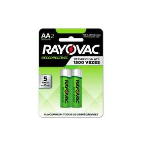 PRODUTO Pilha Recarregável AA (pequena) Marca Rayovac Cartela com 02 Unidades 1.2V, 1350mah Recarga de até 1500 vezes Sem efeito memória Composição: níquel hidreto metálico Mantém até 60% de sua carga mesmo armazenada por 12 meses