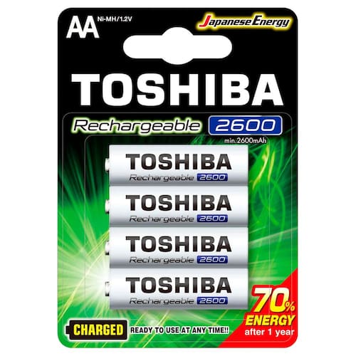 Cartela com 4 Pilhas Recarregáveis Toshiba AA 2600mAh