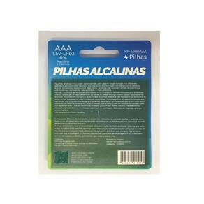 Especificações: - Marca: Knup - Modelo: KP-4900AAA - Tipo: Pilha Alcalina - Voltagem: 1,5V - Tamanho da pilha: AAA - Quantidade de pilhas: 4 - Compatibilidade: Controles remotos, mouses sem fio, relógios de parede e etc.