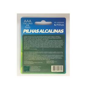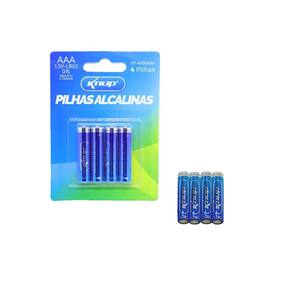 Especificações: - Marca: Knup - Modelo: KP-4900AAA - Tipo: Pilha Alcalina - Voltagem: 1,5V - Tamanho da pilha: AAA - Quantidade de pilhas: 4 - Compatibilidade: Controles remotos, mouses sem fio, relógios de parede e etc. Ean: 7898652416057