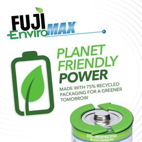 A embalagem com código de data assegura que as pilhas estejam frescas e prontas para oferecer o melhor desempenho quando você precisar. As pilhas Fuji Enviromax combinam potência, durabilidade e design ecológico, tornando-se uma excelente escolha para consumidores que buscam soluções energéticas confiáveis com menor impacto ambiental.