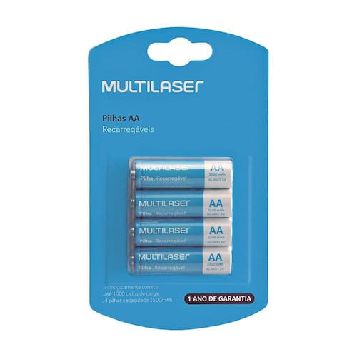 Pilhas Recarregáveis AA Multilaser 2500mAh Com 4 Unidades- CB052