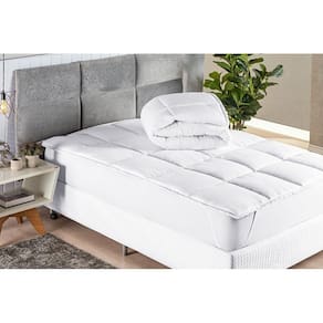 Pillow Top Casal Suave Extra Macio em Micropercal 200 fios O Pillow Top Suave foi desenvolvido para dar mais conforto e durabilidade para o seu colchão, excelente para uma noite de sono revigorante, de fácil encaixe e manuseio na hora de lavar o produto, pode ser lavado na máquina em lavagem leve. É a camada extra de conforto no colchão que você precisa. Afinal você merece ----------------------------------------------------------- Ele possui o toque de Silicone que deixa a cama super macia proporcionando mais conforto, super prático de pôr sobre a cama com elásticos para fixação. Fabricado em tecido 100% poliéster, com 200 Fios, possui acabamento com elástico, enchimento em manta siliconada volumosa. Sua principal característica é adicionar uma camada extra de maciez e conforto ao seu colchão garantindo suas noites de sono mais saudáveis e tranquilas ----------------------------------------------------------- Ficha Técnica: - Nome do Produto: Pillow Top Toque de Plumas Casal - Tamanho: 1,38m x 1,88m x até 40cm alt. - Material: 100% Poliéster;- Marca: Nathalia Enxovais