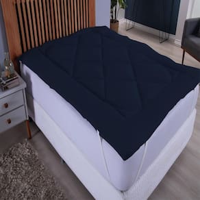 Pillow Top Extra Macio Para Colchão Queen 1,58mx1,98mx0,05. COR MARINHO Descrição: contém na embalagem 01 pilow top Queen Size medidas indicadas para camas 1,98mx1,58m indicada para colchão até 0,50cm de altura anti alérgico tecido Micropercal 100% poliéster enchimento manta sofit 600 gramatura altura do Pilow 0,05cm