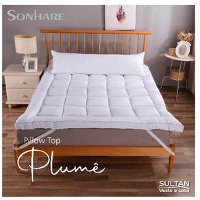 Pillow Top Super Macio King 193x203x7cm 1000g/m² Fibra Siliconizada Sonhare Plume Quer dormir com ainda mais conforto e qualidade? O Pillow Sonhare Plume é perfeito para você. Este produto proporciona uma camada extra de suavidade ao seu colchão, garantindo noites de sono mais relaxantes e aconchegantes. Especificações do Produto: Pillow Top King: 1,93m x 2,03m x 7cm de altura Composição: Tecido: 100% Poliéster Enchimento: Fibra Siliconizada Gramatura: 1000g/m² Destaques do Produto: Conforto Extra: Com 7cm de altura e enchimento de fibra siliconizada, o pillow top proporciona uma superfície macia e aconchegante para suas noites de sono. Qualidade e Durabilidade: O tecido micro garante resistência e uma sensação agradável ao toque. Praticidade: Fácil de colocar e remover, ideal para quem busca uma solução rápida e eficiente para aumentar o conforto do colchão. Ideal Para: Quem deseja aumentar o conforto do colchão sem precisar trocá-lo. Pessoas que buscam um sono mais suave e relaxante. Presentes especiais para casamentos, aniversários e outras ocasiões importantes. Instruções de lavagem: Lavar à temperatura máxima de 30°C Não usar produtos com cloro Secagem à máquina em temperatura mínima Não passar Não limpar à seco Limpeza a úmido profissional em processo normal Imagem Ilustrativa Santo Magazine