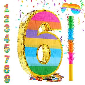 - Pacote completo: inclui 1 pinhata número 6 arco-íris, 1 palito, 1 venda e confetes de 30 g que podem ser preenchidos dentro da sua piñata. Adiciona um toque vibrante ao seu aniversário ou festa temática de festa. Peça nossa piñata número 6 com confiança e ofereça uma garantia vitalícia!