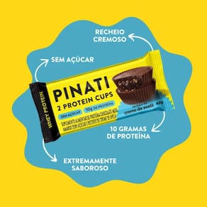 Cansado da mesmice nos snacks Que tal uma explosão de sabor com 10g de proteína, sem açúcar e sem glúten Apresentamos a Protein Cups sabor Creme de Avelã da Pinati, a tortinha de chocolate meio amargo recheada com um creme de avelã irresistivelmente cremoso que vai te conquistar desde o primeiro pedacinho A combinação perfeita de chocolate intenso e creme de avelã suave oferece uma experiência única de sabores e texturas. Ideal para pré ou pós-treino, ou para matar aquela vontade de doce sem culpa. Cada pacote vem com 2 unidades, perfeitas para compartilhar ou saborear sozinho