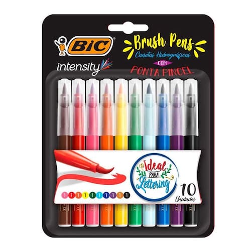 Caneta hidrográfica ponta pincel Brush Pens Intensity ideal para Lettering com 10 unidades - Bic