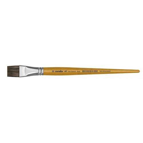 Pincel Condor 441 - ChatoPincel Chato com Pelo especial de orelha de boi, usado na abertura e largura com uma ou mais cores na ponta.- Longo - Madeira - Verniz incolor - Pelo especial de orelha de boi - Formato chato - Virola de alumínioIndicado para:- Tinta Acrílica - Aquarela - Artesanato - Cerâmica - Porcelana/ Vidro - Tela/ Acrílica - Tela/ Óleo - Tintas à base de água - Tintas diversas