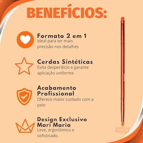 Com seu design inovador, o Pincel MM-205 permite a aplicação precisa de produtos em áreas delicadas do rosto, como contornos, sombras e canto interno dos olhos. Suas cerdas macias e sintéticas garantem conforto e um resultado profissional, transformando qualquer look, do clássico ao artístico, com facilidade e qualidade.