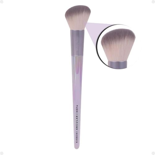 Contorno: Use o lado angular do pincel para aplicar o contorno nas áreas desejadas, como as maçãs do rosto e ao longo da mandíbula. Faça movimentos suaves e esfume para um acabamento natural.
