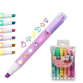Pincel Marca Texto 6 Cores com Carimbo KZ6015 - KAZ O marca texto com carimbo KAZ, disponível em suaves tons pastel, é a ferramenta ideal para quem busca destacar informações de maneira elegante e delicada. Com suas seis cores suaves, este produto oferece um toque sutil e sofisticado, perfeito para qualquer ambiente de estudo ou trabalho. A combinação de ponta de marca texto e carimbo proporciona versatilidade e praticidade no dia a dia. Características do Produto: