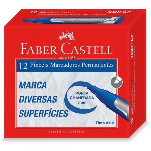 Pincel Marcador Permanente Azul - 12 Unidades Ponta maior e mais resistente 5mm Marca diversas superfícies Cores mais intensas Novo design Corpo maior e mais grosso