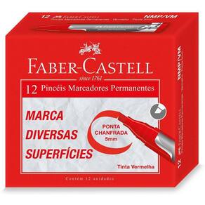 Pincel Marcador Permanente Vermelho Faber Castell - 12 Un Descrição: - Ideal para grandes áreas em geral; - Escreve em diversas superfícies: madeira, metal, plástico, vidro, flip chart e outros materiais. Especificações: - Cor: vermelho; - Ponta maior e mais resistente 5mm Marca: Não Informado Ean: 7891360667452