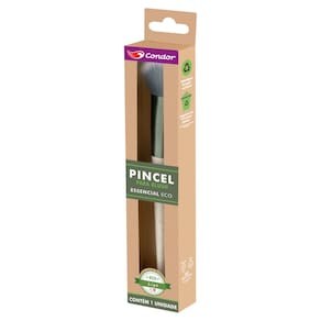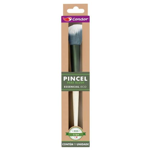 O pincel para blush Essencial Eco Condor é ideal para uma aplicação natural na medida certa para aquele ar de saúde, suas cerdas sintéticas e chanfradas acompanham o formato das maçãs do rosto e distribuem a maquiagem de maneira uniforme.