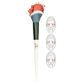 Modo de uso: Com o pincel, pegue uma pequena quantidade do blush ou iluminador e dê leves batidinhas para remover o excesso de produto. Espalhe sobre as maçãs do rosto com movimentos circulares.
