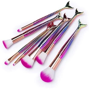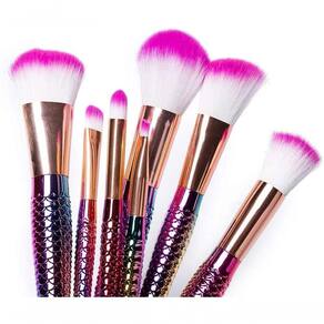 Kit com 7 Pincéis de maquiagem cabo (cauda) de sereia