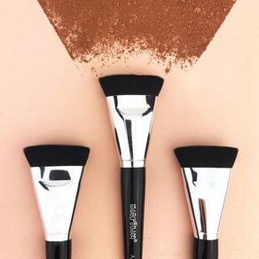Especialmente desenvolvido para aplicar e fazer marcações de produtos líquidos e cremosos para contorno. Macio, de cerdas sintéticas e com formato ideal para a técnica de contorno funciona perfeitamente para qualquer formato de rosto .