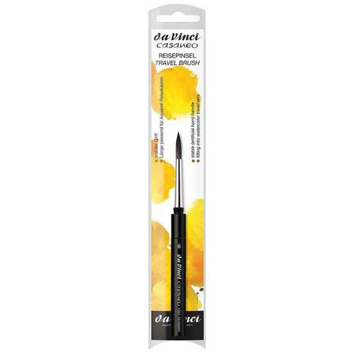 Pincel Redondo Sintetico Da Vinci Casaneo 1593Tp Nº 06 Pincel de aquarela redondo feito com fibra sintética extra macia e cabo plástico com dupla seção desmontável para proteção das fibras e fechamento do pincel. A série TP, conhecida como Travel Brush/ Brush, é popular entre os pintores Urban Sketchers, e vem em uma embalagem transparente unitária. Técnica de Pintura: Acrílica / Aquarela Superfície de Pintura: Vidro/ Papel/ Tecido Pelo/Fibras: Fibras sintéticas Ferrolho: Ferrolho prateado Cabo: Plástico Comprimento do Cabo: Curto Família: CASANEO Formato: Redondo