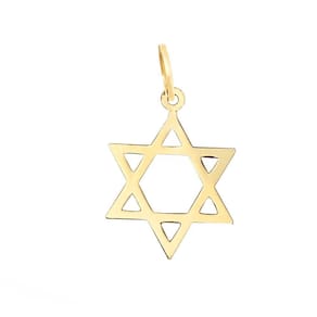 Este é um lindo Pingente Estrela de Davi em Ouro 18K que sugere delicadeza e feminilidade para quem a usa. O nosso pingente em ouro é uma peça versátil que pelo seu tamanho 2,5 cm x 2,0 cm combina com diversos visuais.