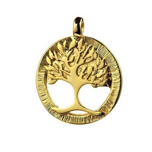 Pingente redondo, com o desenho da árvore da vida. Mede 3,5 cm. De diâmetro.