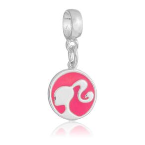 MODELO: Berloque da barbie rosa redonda banhado com 100 milésimos de prata 925.